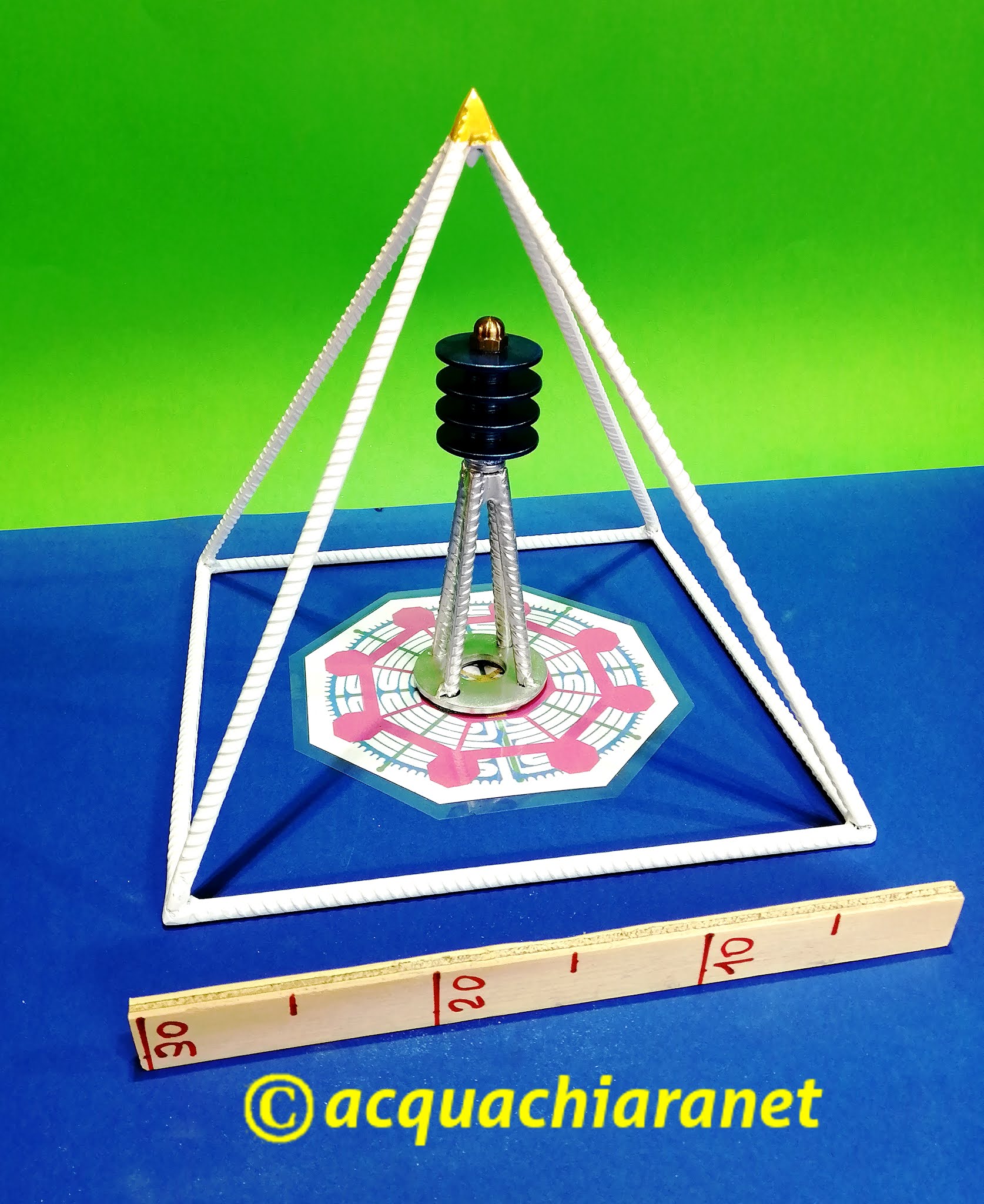 E' chiaro che sto complesso convoglia ed espande in una forma sferica molto più ampia del precedente , diciamo casa e giardino ma anche molto oltre, il pregio ulteriore è che la Piramide più grande permette anche un uso da vuota sempre energeticamente parlando, ricaricare acqua, pulire medicinali o altro, lenire il dolore di polsi o caviglie che posso stare nella piramide.